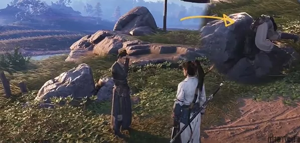 新手前期跟着任务指引经过天涯客后,会看到一个卡在石头里的人
