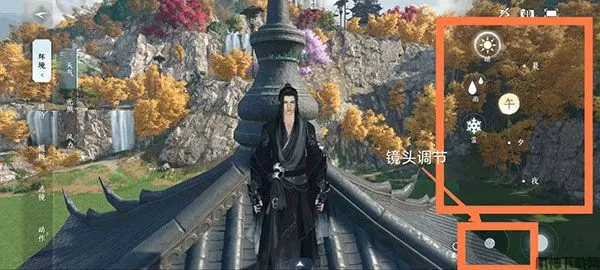 相机功能可以对环境、镜头角度等参数进行调节,右下角摇杆处可对镜头视角进行调整,不论是拍人像、还是拍庄园风景全貌/特写,都可以轻松做到~满足友友们的一切拍照需求。