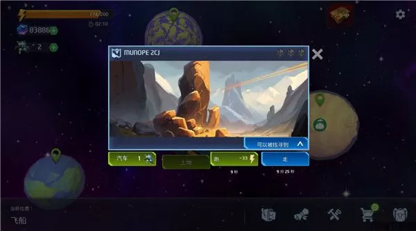 1、玩家进入游戏是默认在宇宙飞船中的,玩家可以在多个星球之间进行旅行