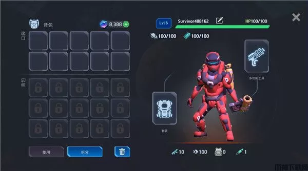 4、可以将拾取到的装备先武装好自身再出发,在背包里可以查看各种装备和物品