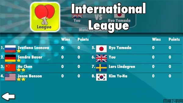 1、下载进入乒乓球3D游戏当中,首先我们点击乒乓球联赛模式,和各国强大的对手进行对战;