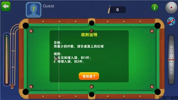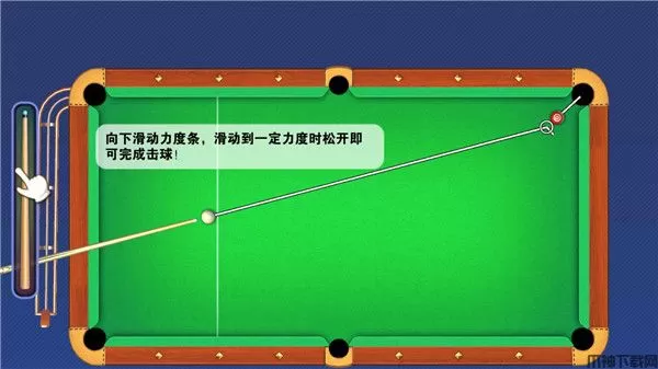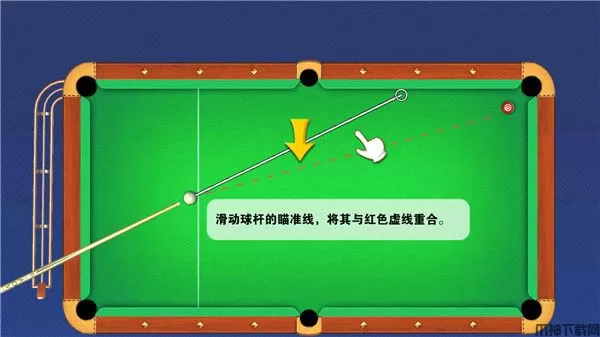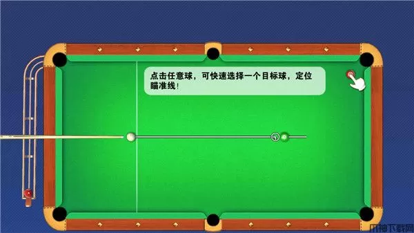 3、并且点击任意球,可快速选择一个目标球定位瞄准线,