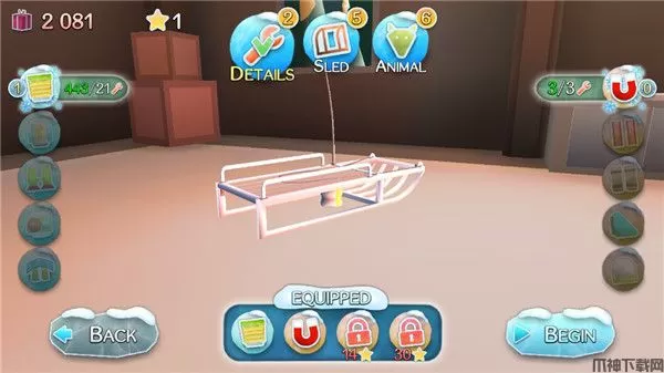 4、选择雪橇还有道具,然后点击begin开始;