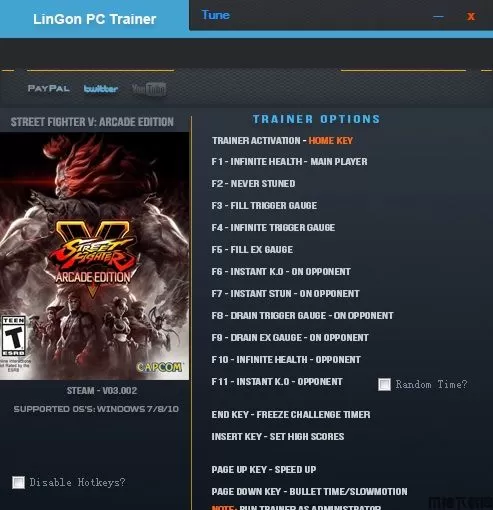 街头霸王5十五项修改器是由Capcom进行开发的一款街机格斗类游戏,它在2016年进行游戏的发售,本作属于经典格斗游戏街头霸王系列的第五部,采用了虚幻4引擎进行开发,让游戏成为全3D的作品,将带给玩家前所未见的精细视觉效果,并且将原本复杂的操控进行了简化,新手也能够轻易的入手游戏,能够让玩家尽情的享受,该作取消了前作储蓄超必杀技的UC槽,采用了V槽加EX槽技能系统。街头霸王5承接了前作的剧情,游戏中的主人公隆为了追求“真正的格斗家”之路正在世界旅行中,他在旅途中会遇到许许多多强劲的对手,隆想要和这些人切磋,以追求武学的最高境界,玩家还能够在自由模式当中扮演自己喜欢的格斗家,与电脑对战或者联机对战。小编为各位推出一款同名的修改器功能强大,有几项功能非常适合游戏的使用,希望各位喜欢。