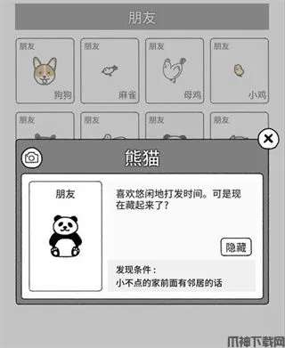 7、熊猫召唤条件:在小不点的家前面放置邻居 就会召唤熊猫出来~~