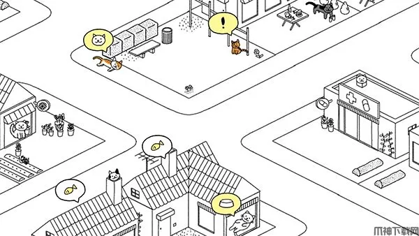 4、每个猫都有一个自己居住的房子,比如有的猫住在医院,有的住在超市等。你可以选择这些房子的摆放位置,慢慢就组建出了一个村庄了