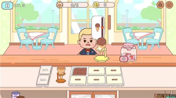冰淇淋咖啡馆官方版以闯关模式进行,提供60关供玩家们挑战,随着关卡的提升难度也随之增加,闯关通过关卡获得金币奖励,利用金币可以升级你的店铺设备,帮助你更好、更快的制作出各种美味的冰淇淋!