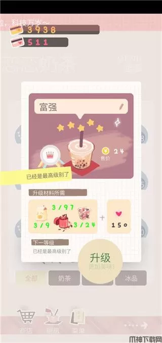 1、研发等级:可以从研发新品奶茶中获取经验