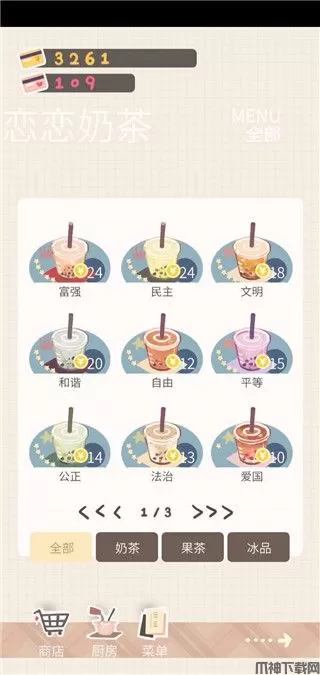 5、游戏玩法丰富,制作奶茶、果汁、冰饮料,需要学习的制作配方很多。