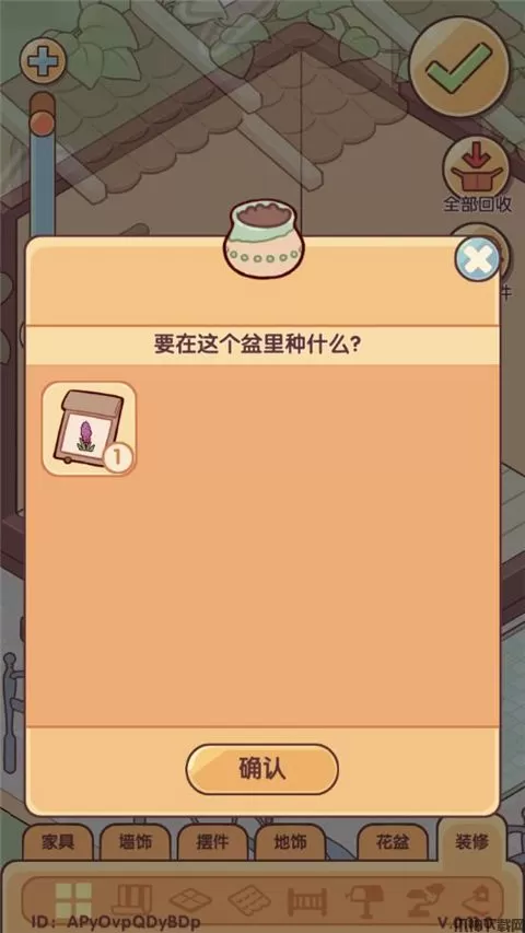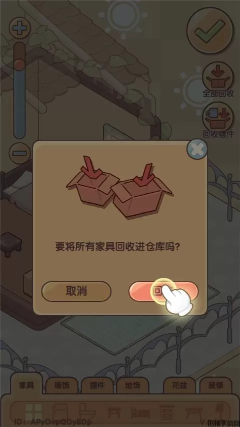4、选择回收,所有家具可以一键收回背包。