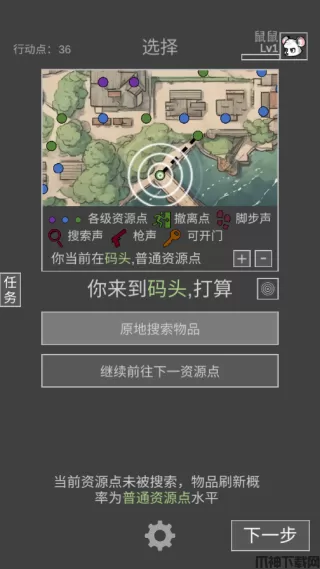 5、开始搜索,点击地点进行选择,不同的地方标点的颜色代表可以搜集到物品的等级;