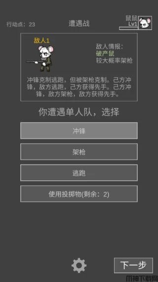 老鼠大冒险是一款文字版逃离科塔夫游戏,采用单机策略模式,战斗前可以配置所携带的装备和补给品,每件物品的选择不仅影响战斗结果,也直接关联到资源的消耗与管理,当然每一个是有消费的。