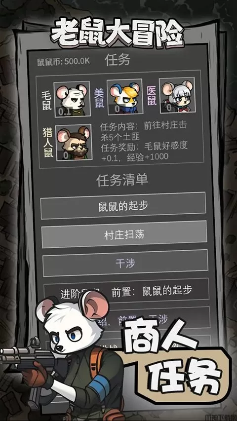 老鼠大冒险手游中还有商人任务、交易系统,完成任务增加好感度,前往交易系统购买各种武器、道具!
