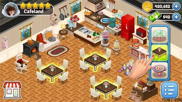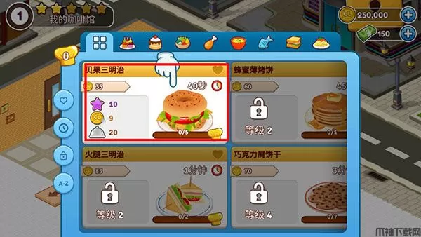 3、提供不同烹饪风格的美食,在柜台放满美味的菜肴,以满足顾客,解锁新食谱和添加菜单,设计梦想中的咖啡馆