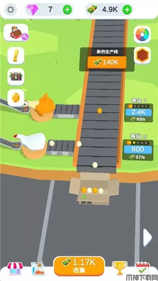 相比较于大多数同类型游戏而言,鸡蛋工厂大亨中文版整体玩法相当的简单,没有任何的难度,无论男女老少皆可上手操作,然后在游戏以鸡蛋工厂经营者的身份,通过不断发展更多的流水线,实现自动喂鸡、自动取蛋、自动包装、运输、销售等一系列生产流程来完成各种任务,以此赚取丰厚的现金收益。