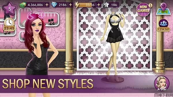 换装过程中,如果衣服饰品不够可以继续去商店选购。在这里玩家可以与最热门的好莱坞明星见面,在电影、时尚领域不断取得突破,参与派对晚会,展现魅力,最终成为整个好莱坞最亮眼的明星。