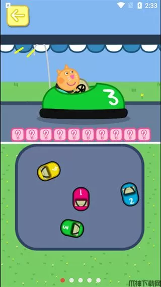 利用手指移动屏幕顶部的佩奇和乔治的碰碰车。