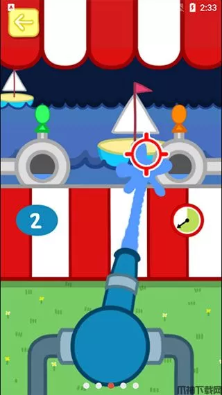 帮助佩奇利用高压水炮射中移动的目标。