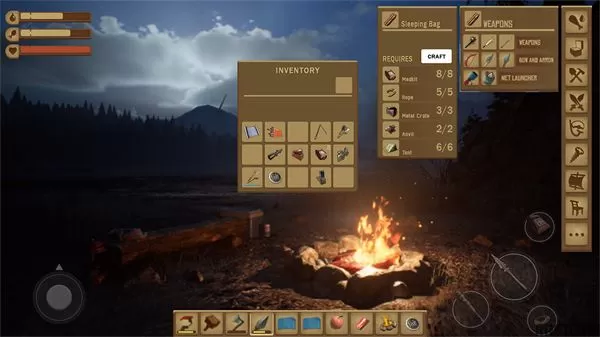6、夜晚点燃树枝篝火,防止野兽袭击,并且利用杂草铺垫石头当做床,寒冷会消耗你的体力;