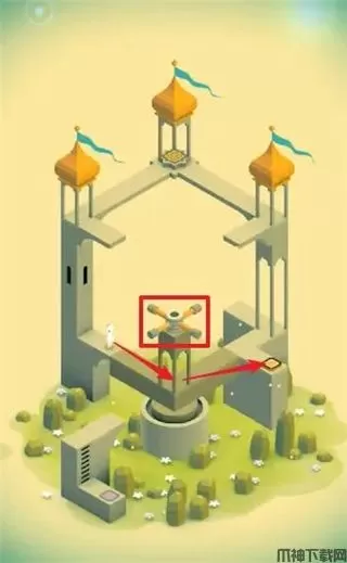 旋转正中心的阀门让通道通向按钮,点击让艾达站在按钮上,打开新的机关后。回到最初的地方,再次旋转阀门让通道通向第二个按钮上。机关触动,平台上升,再次旋转阀门,让艾达来终点前。