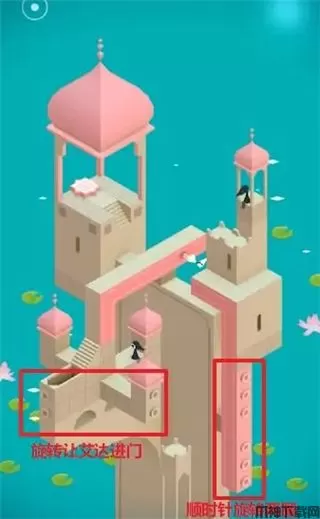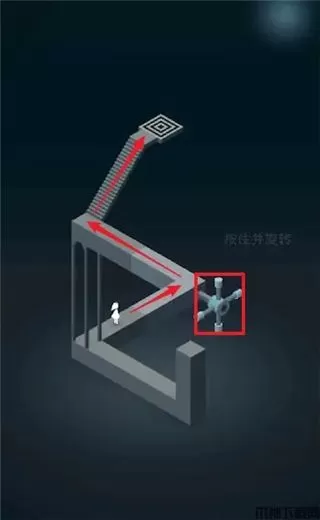 1、先旋转阀门,让艾达来到台阶上,旋转阶梯让艾达来到通道上,再次旋转让艾达踩上机关。艾达走回通道上再次向旋转,让艾达来到触发的机关上的通道,艾达走上通道再次旋转将艾达带到带到门前。
