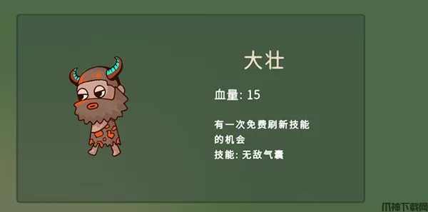 2、人物推荐初始角色大壮(有一次免费刷新和血量高)。