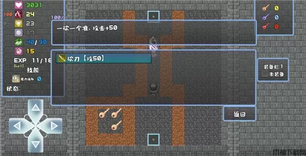 2、左上角的列表分别是你的生命值、攻击力、防御力、魔力、经验值等等