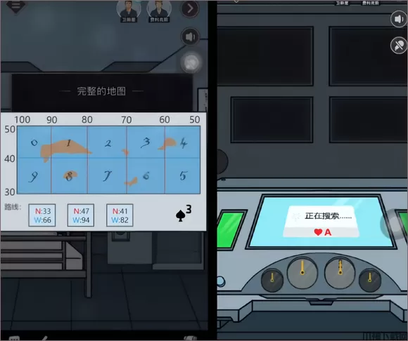 4、将胶水和地图碎片结合得到一张完整的地图,根据地图上的坐标得到海域数字601,输入操作台得到红桃A;