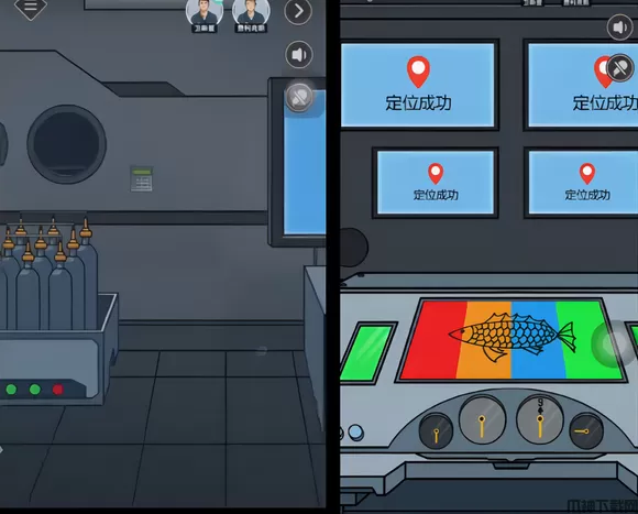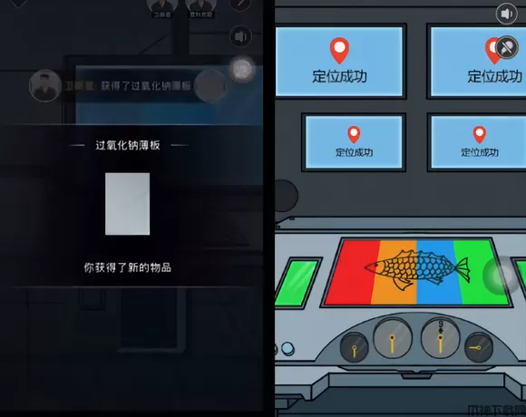 4、左边的鱼板块与右边的鱼颜色数量联系起来,得到密码牌密码2241,救生梯出现;