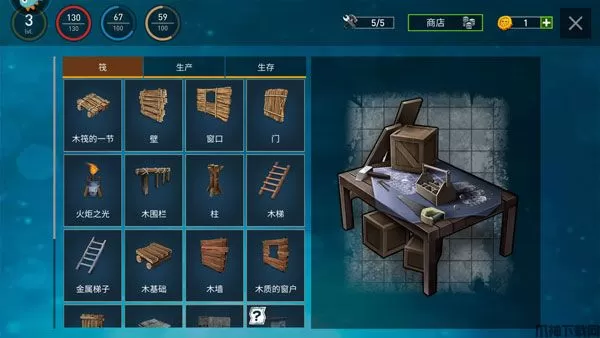 利用数百种制作食谱在生存海洋游戏中可以找到的所有资源。各种装甲部件,任何类型的武器捕杀鲨鱼和其他有用的东西,以便在木筏上生存 - 可用于装箱 - 所有你需要的是资源。