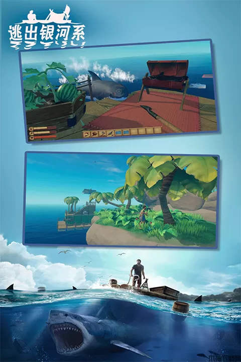 逃出银河系是一款海洋求生逃脱手游。它是一款与众不同的生存游戏,在这款游戏中,玩家一开始就身处在一个漂浮在海上的小木筏上,玩家只靠着一个钩子钩各种从海上漂浮的东西中获得材料。 开始食物和水可以从木箱中获得,后来获得难度越来越大,就必须制造各种物品来自己获得食物饮水等等,越到后期越要自给自足。 游戏中除了漂流,偶尔会有其他木筏上飘来的丧尸,你的选择只有杀死他们或者被他们杀死,前者有奖励,后者重新开始。同时,游戏中还会路过一些荒岛,让您获得更多的生存资源。