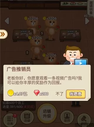 偶尔会遇到一些广告推销员,要求玩家观看一条视频广告,玩家统一观看后会获得金币和钻石的奖励