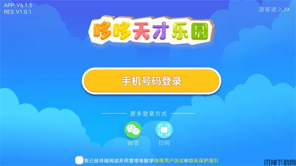 1、首先我们进入哆哆天才乐园游戏,使用手机号登录或者微信登录都可以,还可以进行扫码登录;