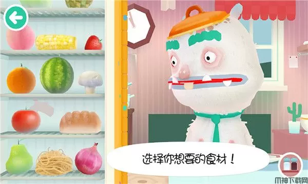 3、从左边冰箱里挑选食物,对于水果可以直接喂给客人吃,对于需要加工的食物可以在右边厨房进行加工