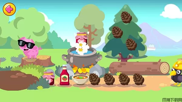 1、游戏中的大部分动物和物品都可以互动,例如利用大锅煮制食物。