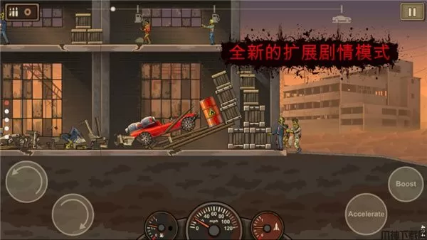 6、给大家提供更多的关卡选择,不同的选择意味着不同的冒险环境,也有着不同特色的僵尸,总之一路困难重重,能否突破重围就看你的车技。