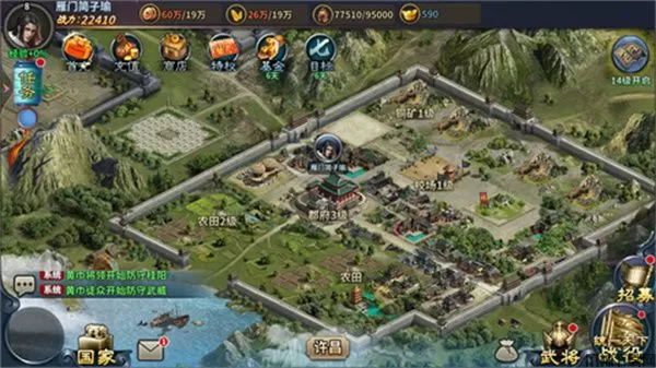 城池经营、城防建设、兵将培养多个维度发展国家。