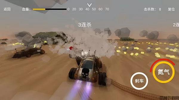 值得一提的是,废土战车游戏的玩法并非是以终点为主要决胜关键的速度竞技,而是更直接的,狂暴飙车死斗。所以战车可以说是这场游戏的核心关键,为了游戏性,也受限于小成本,游戏的玩法中,车辆设有血量、速度、吨位、稳定性等等属性,玩家在对抗中,这些数值也将影响玩家在战场中的表现与发挥。但在荒凉广阔的沙漠中,战车的硬件条件并非绝对,有时候更考验玩家的车技以及胆量。总的来说,在废土战车游戏中,无论是战车的撞击感,又或是氮气加速的速度感,都显得非常真实,毕竟本作采用了最新的物理引擎进行打造,感兴趣的小伙伴一定要来下载试试!