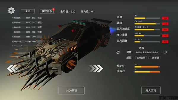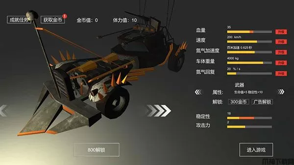 6、获得的金币可以解锁更好的车辆和武器,解锁成就还能获得额外金币。