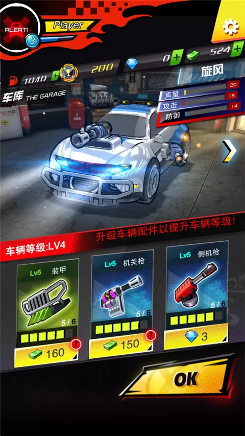 游戏中大家除了要掌握技巧玩法以外,赛车的改装也至关重要,升级装甲、机关枪和侧机枪可以让你在关卡中披荆斩棘一往无前,同时更换车辆皮肤还能迎合你的所好。