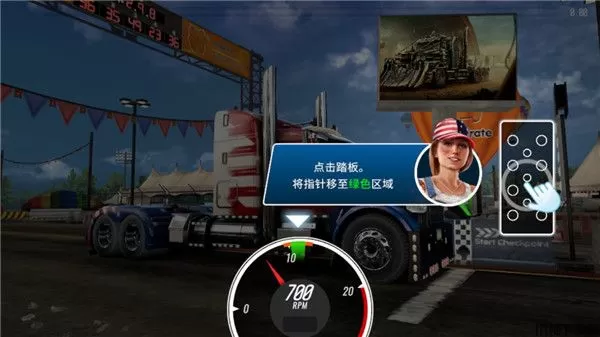 1、游戏中,点击右边的踏板,当指针停留在绿色区域就可以起步。