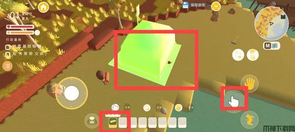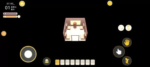 4、左边控制角色的方向,右边控制拿、确定、跳跃等动作,中间的背包玩家可以点击查看日照计所获的物资;