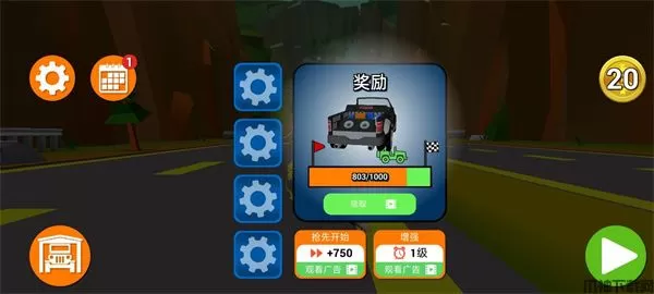 5、游戏结束后,玩家达到一定分数可以获得奖励,新的越野车跑起来一定更带劲;