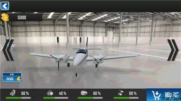 2、出发前还可以购买其它类型的飞机,当然金币可以通过完成飞行任务获得,选择好飞机后进入游戏