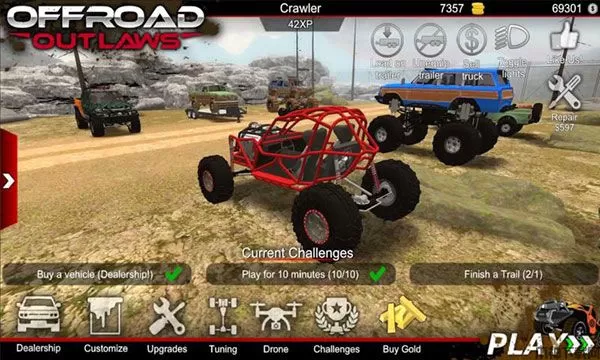 亡命越野中文版(Offroad Outlaws)是一款玩法非常刺激的赛车竞速游戏。玩家们将在我们的游戏中模拟驾驶各种样式的游戏车辆,并展开刺激的挑战之旅。