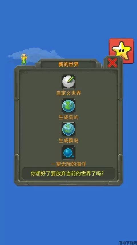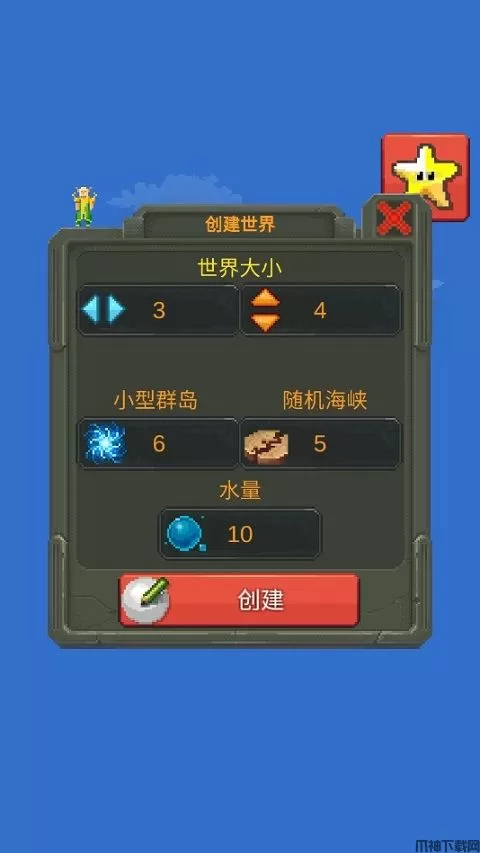 2、点击白色图标可以创建世界,在这里世界的大小,岛屿的类型以及水量的多少都可以控制。