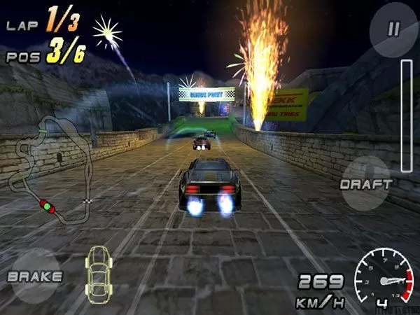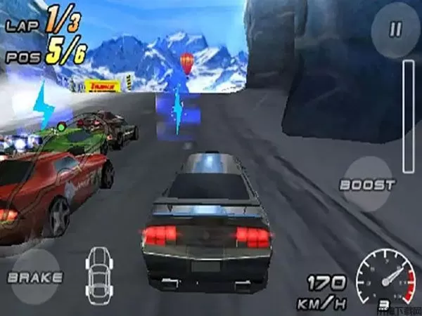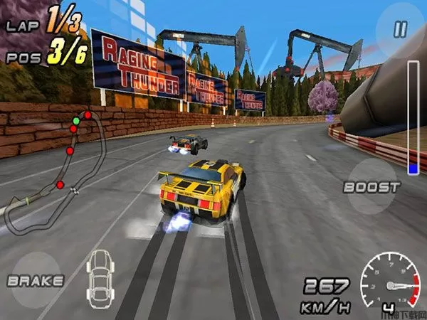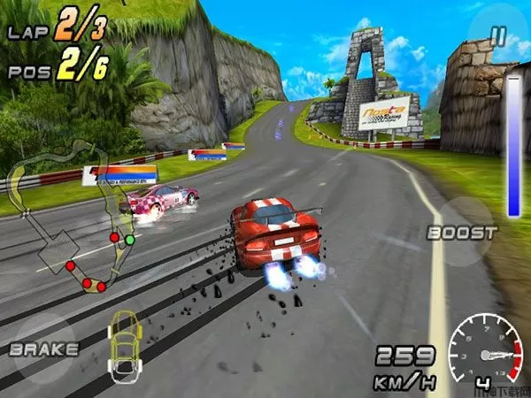 3、游戏采用重力感应的操控方式,比较简单,倾斜设备即可控制赛车的转弯动作。