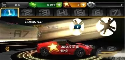 3、所有的车辆解锁都需要“星章”到达一定数量。“星章”数的多少将直接影响到你整个游戏的体验性,因为如果你想升级汽车的各项数值,那么不仅需要相应量的金钱,同时“星章”的获得数量也是必不可少的。