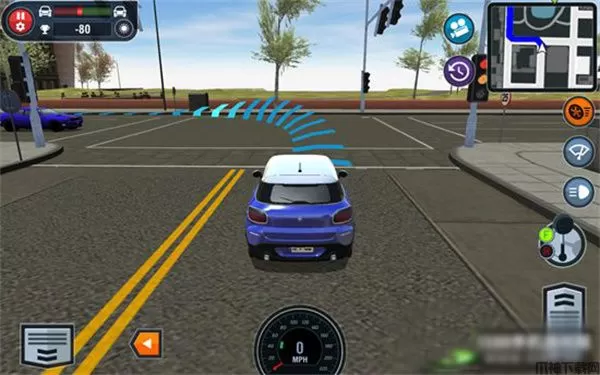 4、大家要时刻注意,这是一款模拟驾校的开车游戏,并不是赛车有,所以在行驶中我们要遵循每一条交通规则才行。
