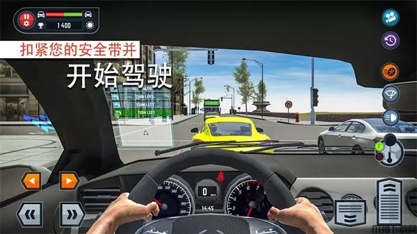 2、进入游戏后,首先就是学习如何启动汽车和驾驶汽车,第一件事就是绑上安全带,然后再启动汽车,踩油门前行。